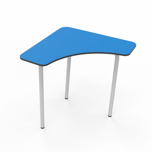 Mesa modular de colectividad para aulas de aprendizaje cooperativo. Su diseño permite distintas combinaciones para trabajar en grupo o individualmente. Se pueden formar grupos de 140cm de diámetro con 4 mesas, además de muchas otras formas. La tapa es de 70x70cm. Estructura metálica Ø35mm soldada pintada en epoxy. Tapa fabricada en Compac Plus HPL® de 14mm con cantos mecanizados en redondo.