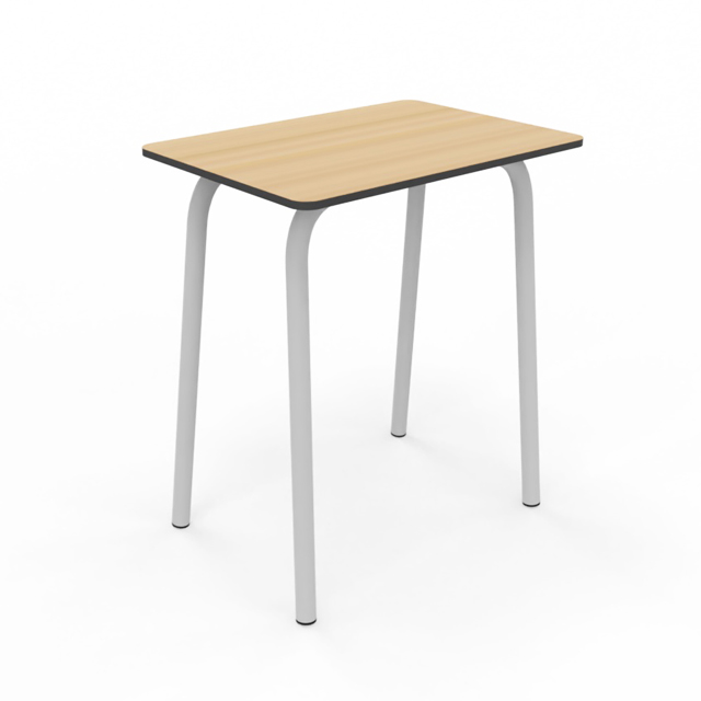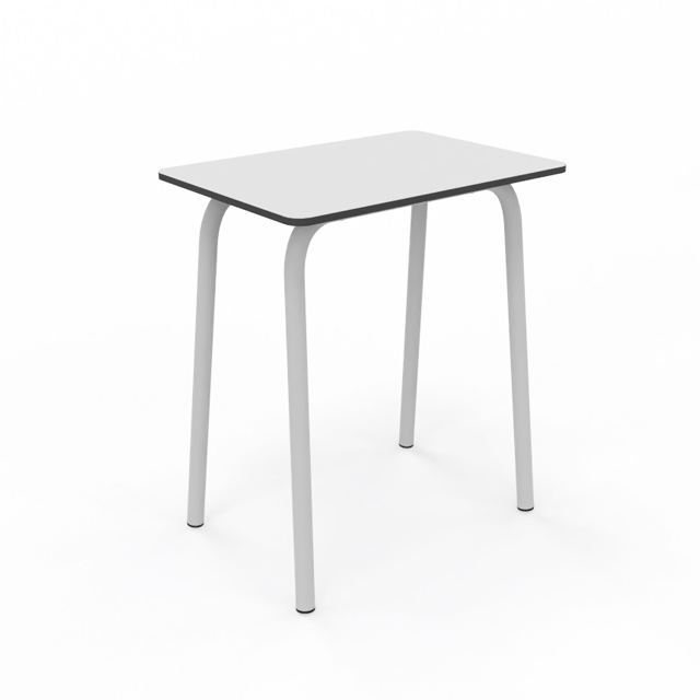 Pupitre para aulas de aprendizaje individual o cooperativo. Tapa de 65x45cm y disponible en todas las alturas homologadas. Estructura metálica Ø35mm soldada pintada en epoxy. Tapa fabricada en Compac Plus HPL® de 14mm con cantos mecanizados en redondo.