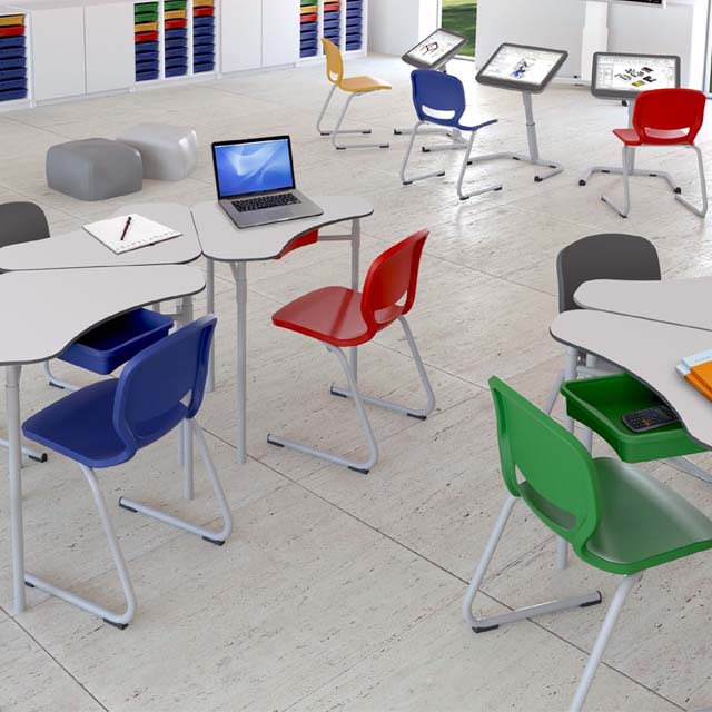 Silla con estructura de patín que facilita la accesibilidad. Estructura metálica y carcasa de polipropileno ideal ara aulas comunes o de aprendizaje colaborativo. Estructura metálica soldada de tubo pintada en epoxy. Asiento de carcasa de polipropileno. Apilable. Material reciclable 100%.