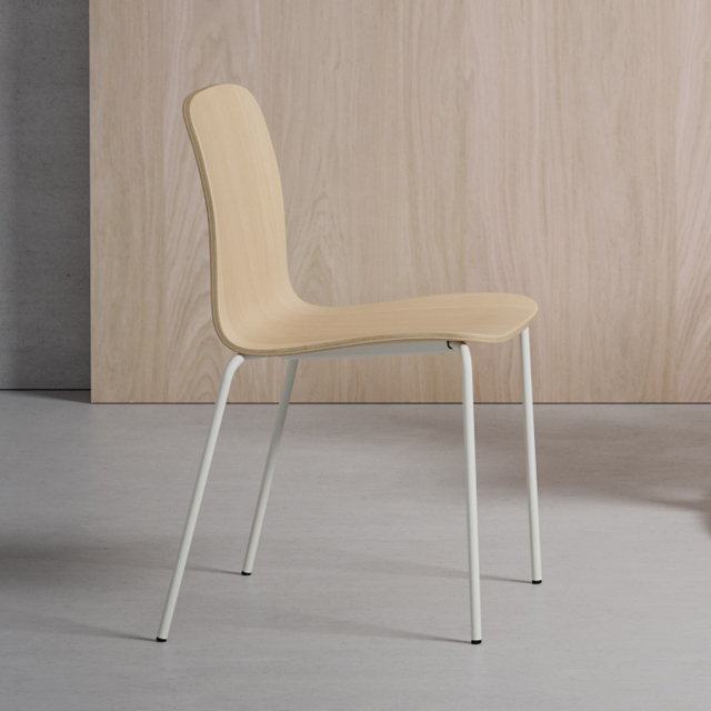Silla de colectividad con estructura fija de 4 patas en tubo de acero redondo, en acabado negro.