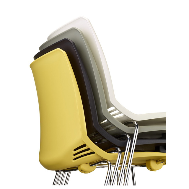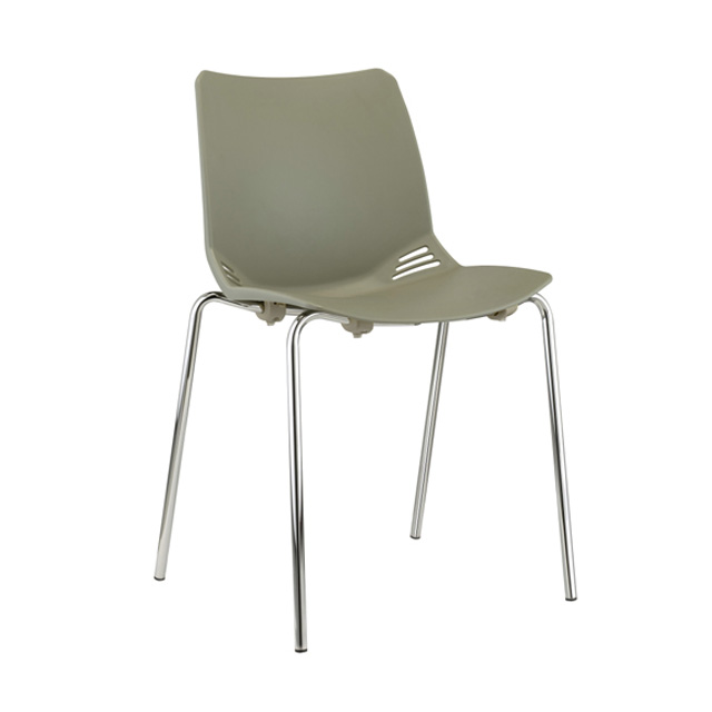 Silla de colectividad con estructura metálica cromada. Asiento de carcasa de polipropileno inyectado disponible en diferentes colores. Apilable. Modelo con opción de asiento tapizado, consultar disponibilidad.