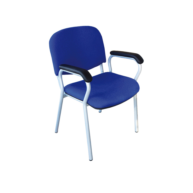 Sillón de profesor de estructura metálica pintada en epoxy. Asiento y respaldo tapizados en tela Bali o skai negro. Brazos de poliuretano.